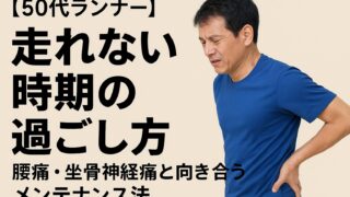 50代ランナーの「走れない時期」に焦点を当て、腰痛や坐骨神経痛への向き合い方、整形外科での診断内容、治療体験、リズムを取り戻すためのメンテナンス法をわかりやすく解説します。